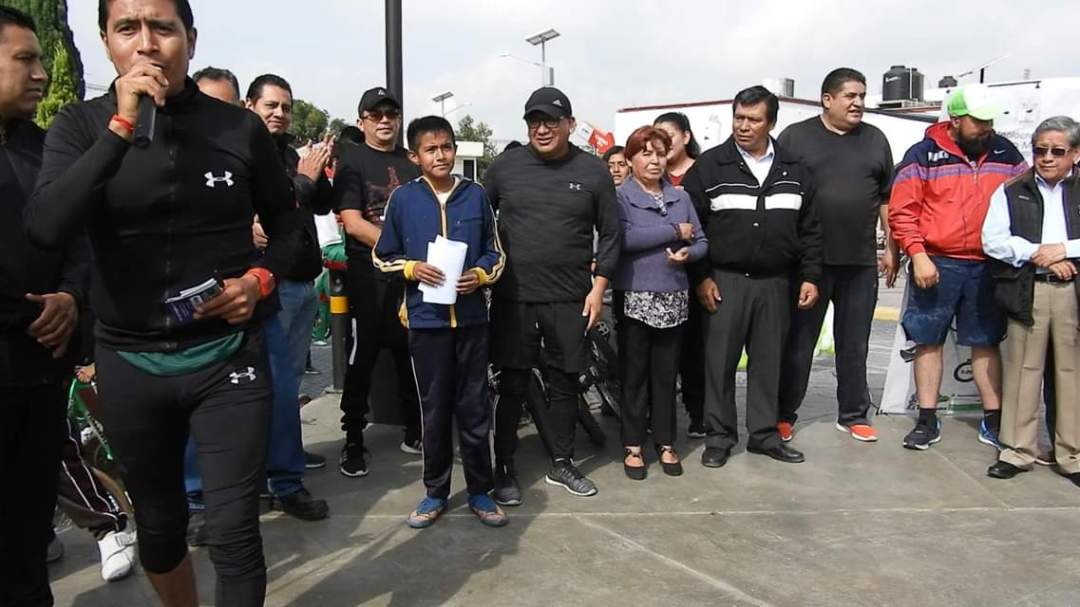 El hecho de no contar con una bicicleta, no fue obstáculo para que un niño decidiera participar corriendo en la rodada organizada este miércoles con motivo del «Día del desafío Teolocholco 2019».