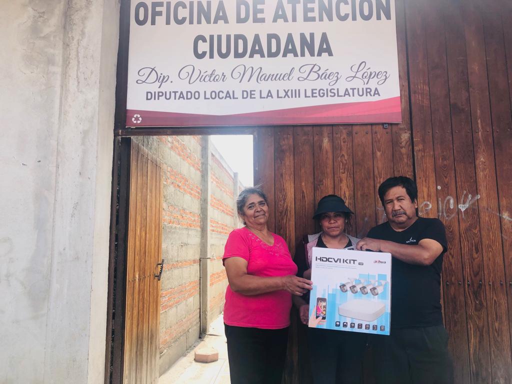 En atención a las y los ciudadanos, el Diputado local por el Distrito XIII, Víctor Manuel Báez López, entregó un kit de cámaras de videovigilancia a vecinos de la calle 16 de Septiembre ubicada en la sección quinta de Zacatelco.