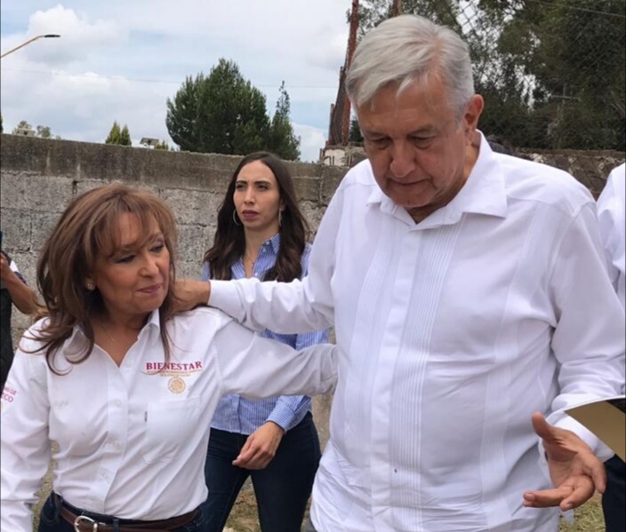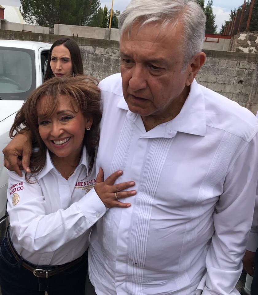 La coordinadora de Programas Integrales para el Desarrollo en Tlaxcala, Lorena Cuéllar Cisneros, recibió al presidente de de la República, Andrés Manuel López Obrador, durante su vista a Apizaco, Tlaxcala.