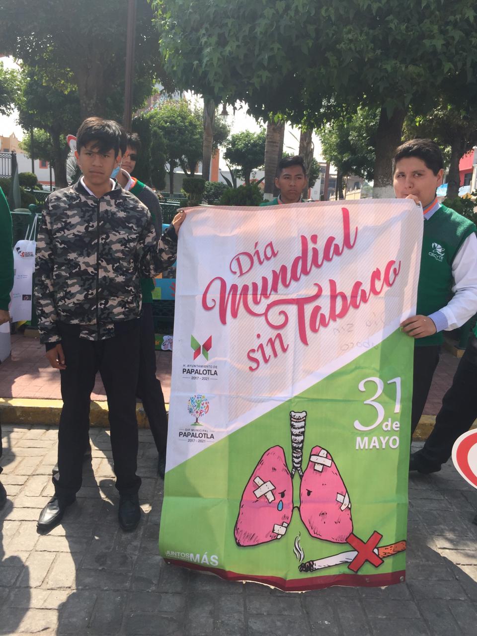 Con la finalidad de generar conciencia en la población y en especial en los adolescentes, el DIF de Papalotla encabezó una jornada para conmemorar el Día Mundial sin Tabaco