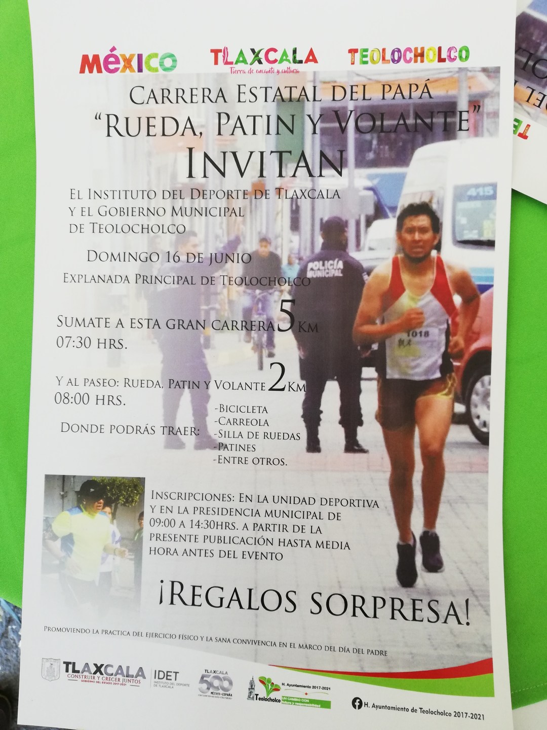 El alcalde de Teolocholco, Gelacio Sánchez Juárez, en conjunto con el Instituto del Deporte de Tlaxcala (IDET), presentaron la convocatoria de la Carrera Estatal del Día del Padre, que se llevará a cabo el próximo 16 de junio.
