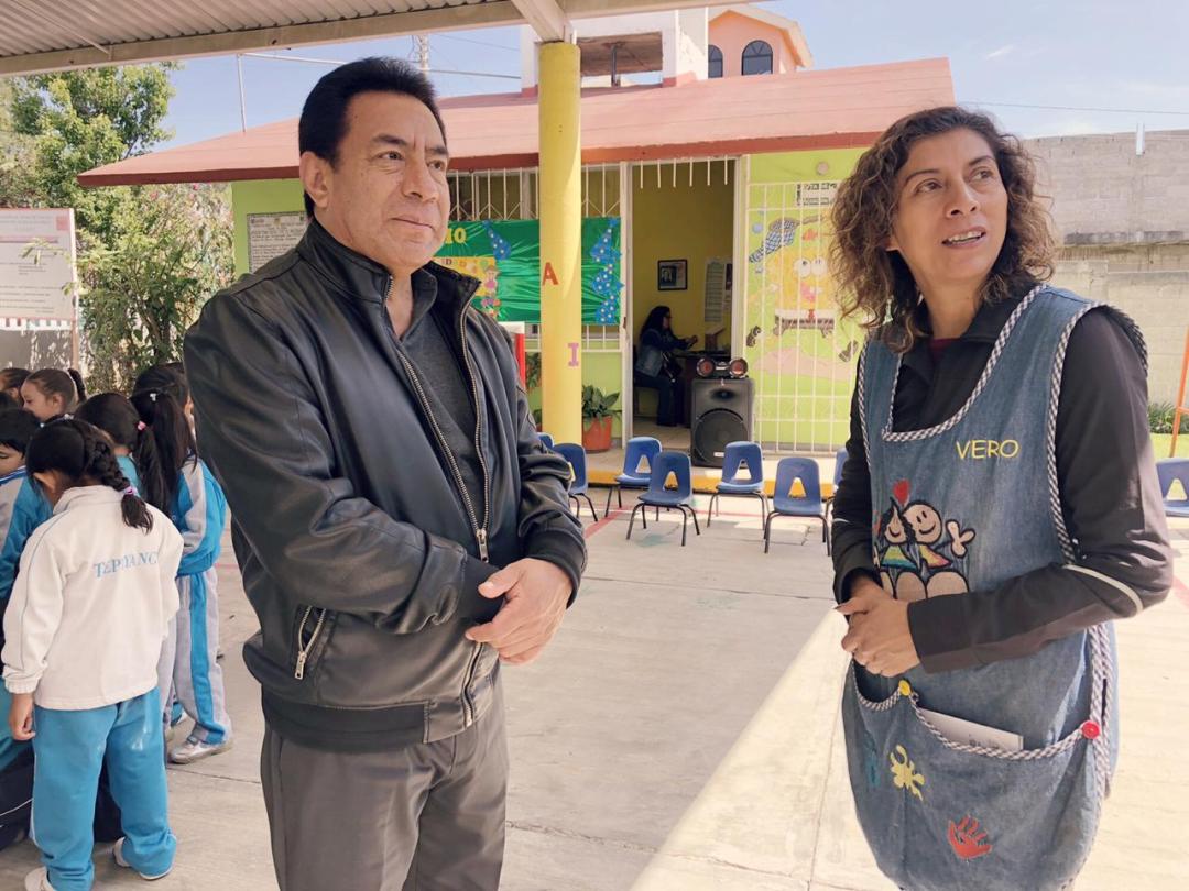En su visita al Jardín de niños “José Vasconcelos”, ubicado en la Aurora perteneciente al municipio de Tepeyanco, Víctor Báez refrendó el compromiso que tiene como representante del Distrito XIII, manifestando que es parte del fortalecimiento de la infraestructura educativa, lo cual redunda en el proceso de enseñanza-aprendizaje, para optimizar la formación académica.
