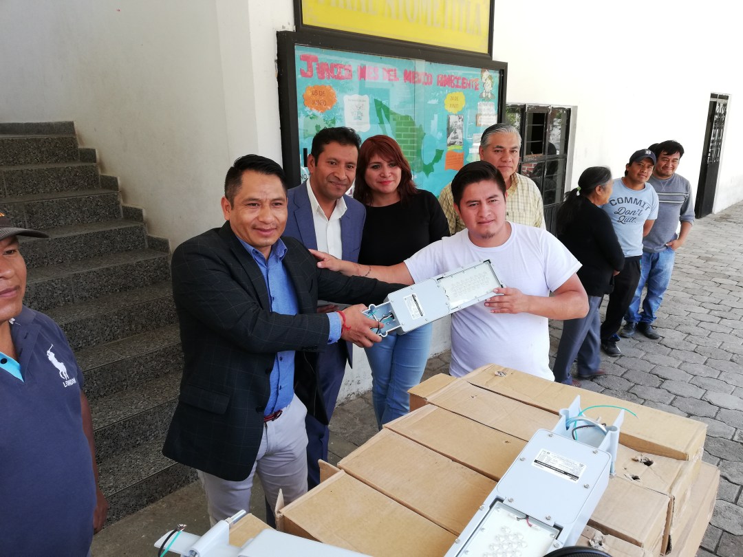 Con la finalidad de mejorar el alumbrado público en la comunidad de Ayometitla, el alcalde de Quilehtla, Oscar Pérez Rojas, realizó la entrega de 140 lámparas led para beneficio de los habitantes de esta localidad.