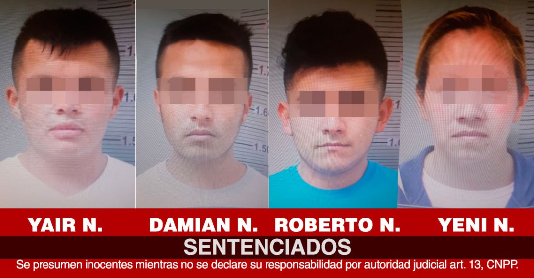 A través de la acreditación de elementos probatorios, la Procuraduría General de Justicia del Estado (PGJE) a través del Agente del Ministerio Público consiguió que la autoridad judicial dictara sentencia condenatoria por 33 años y cuatro meses de prisión a Yahir N., Damián N., Roberto N., y Yeni N., por el delito de secuestro agravado en grado de tentativa.