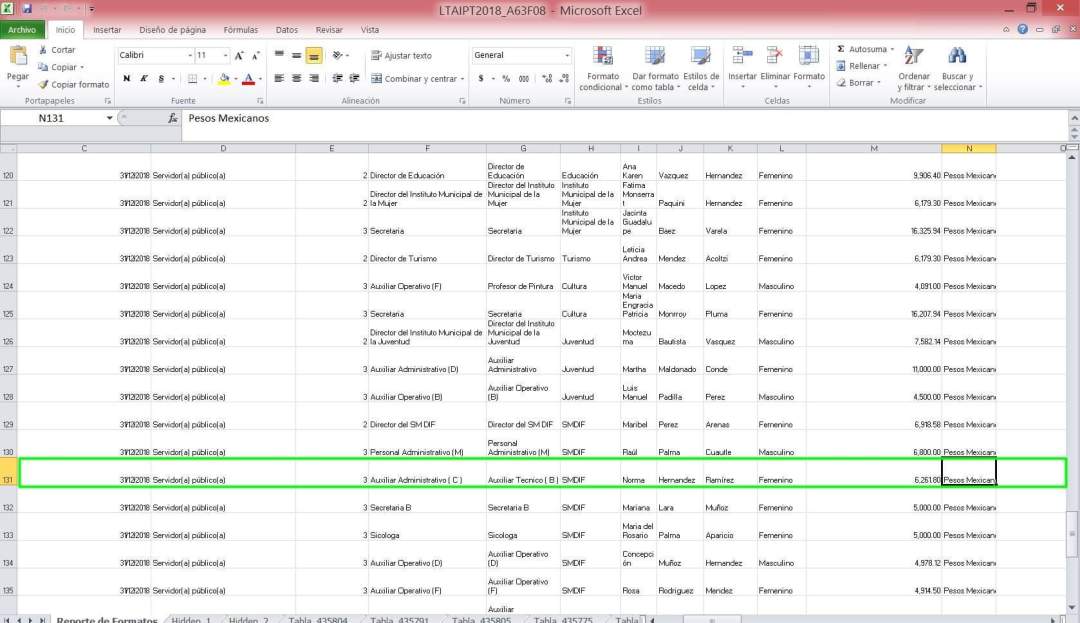 Hernández Ramírez labora como auxiliar administrativo, con un sueldo de seis mil 261 pesos, de acuerdo con un documento filtrado a este medio de comunicación.