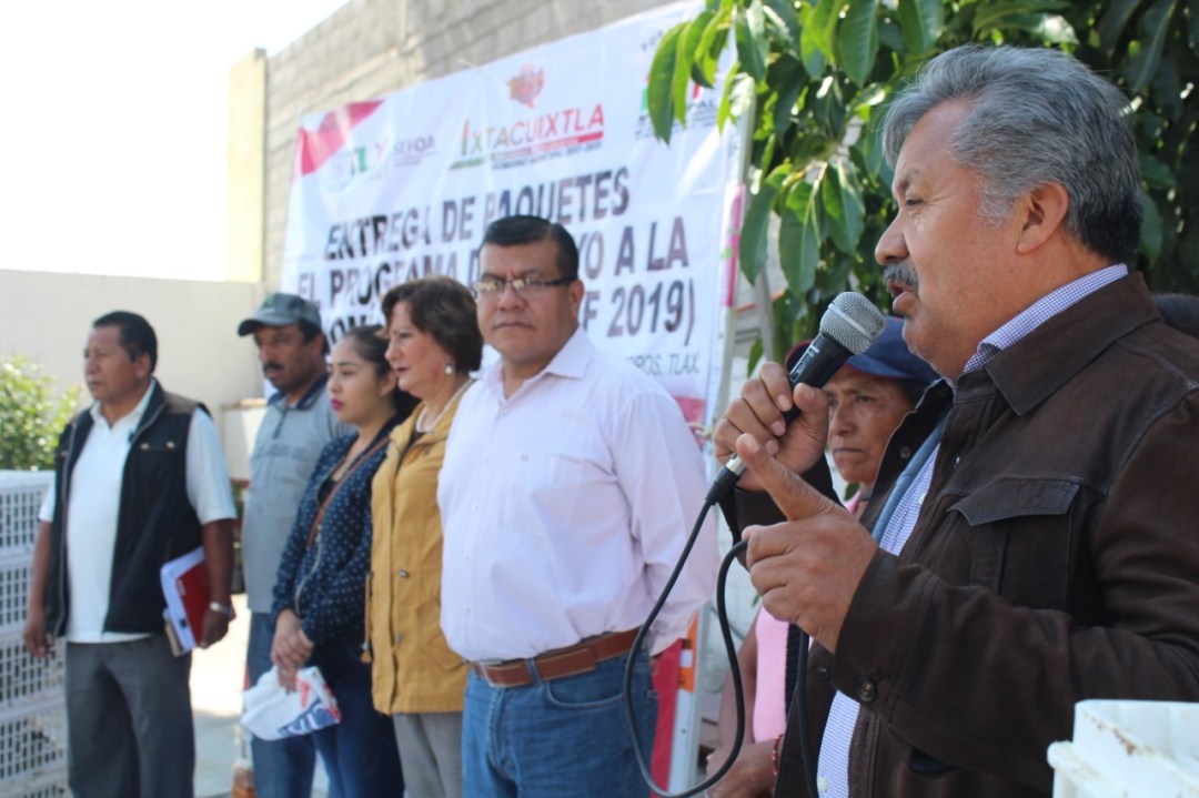 Ante el Secretario de Fomento Agropecuario (Sefoa), José Luis Ramírez Conde, la Presidenta Honorifica del SMDIF, Mtra., Georgina Beatriz Luna Sánchez, la Síndico, Teresa Díaz, el Presidente Municipal de Ixtacuixtla, Mtro., Rafael Zambrano Cervantes, al encabezar la entrega de 78 paquetes de pollos del PAEF-2019, afirmo que se ha logrado gestionar apoyos para mecanizar el campo, y llevar beneficios a más de 800 personas.