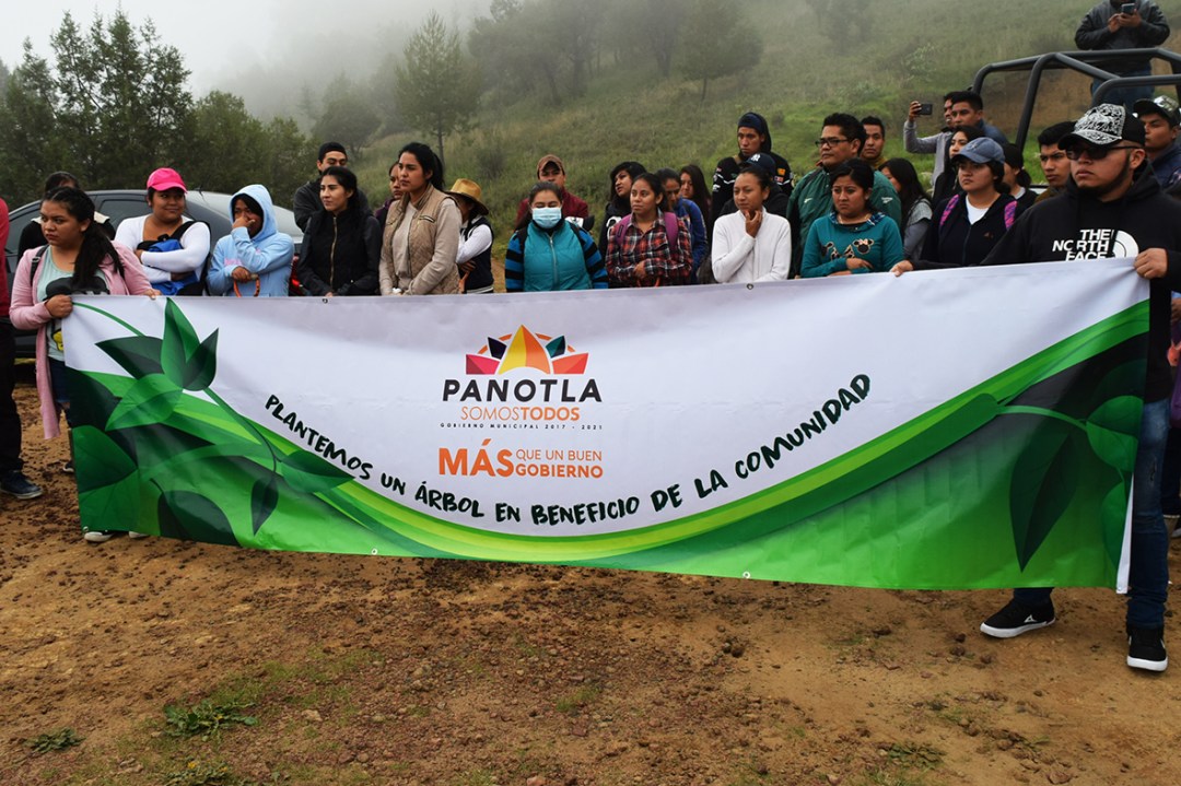 El presidente municipal de Panotla, Eymard Grande Rodríguez, dio el banderazo a la campaña de reforestación 2019 realizada en el cerro Ahuashuatepec, de la comunidad de San Mateo Huexoyucan, cuya meta fue plantar 15 mil de ejemplares de la especie de pino.