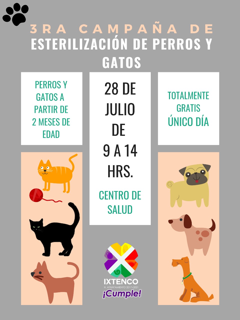 Raúl Mauricio García, Regidor de salud dijo que en lo que va del año, se han realizado dos campañas de esterilización, por lo que el próximo 28 de julio de 9 a 14 horas, estarán llevando a cabo la tercera campaña en las instalaciones del centro de salud de Ixtenco.