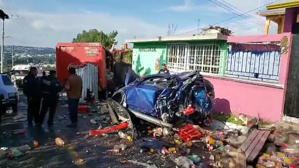 La mañana de este miércoles, un camión repartidor de refrescos de la empresa Coca-Cola presuntamente se quedó sin frenos, por lo que se impactó a dos vehículos que se encontraban estacionados y en dos viviendas de la comunidad de Tizatlán, lo que dejó un saldo de tres personas lesionadas.