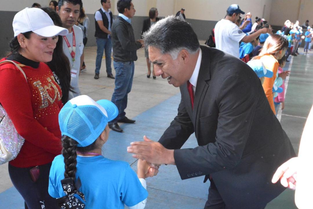 La mañana de este 29 de julio, el alcalde, acompañado por su esposa, la presidenta honorifica del DIF municipal, María Asunción Coyotzi Cahuantzi, recibieron a los infantes que participarán en las actividades preparadas para ellos.