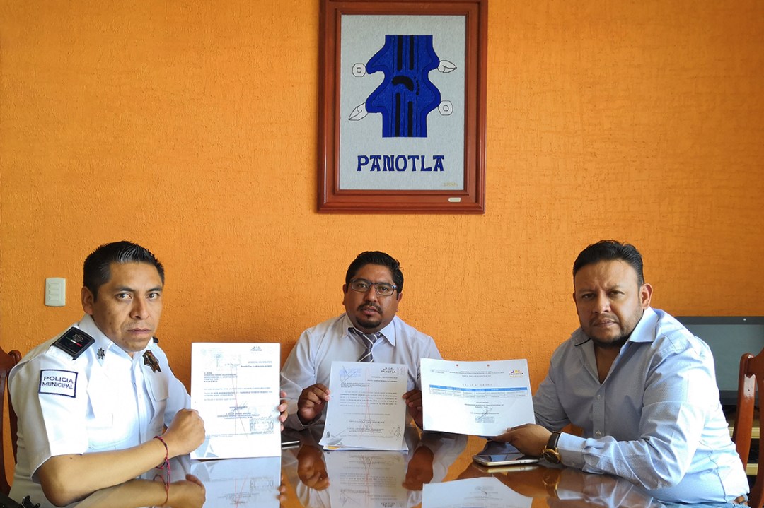 El presidente municipal acompañado por Anastacio Carro Córdoba regidor de seguridad y por Óscar Grande Sánchez Comisario de Seguridad Pública y Vialidad Municipal de Panotla, mostraron la documentación comprobatoria del acta administrativa levantada, así como la baja efectuada al entonces elemento de seguridad.