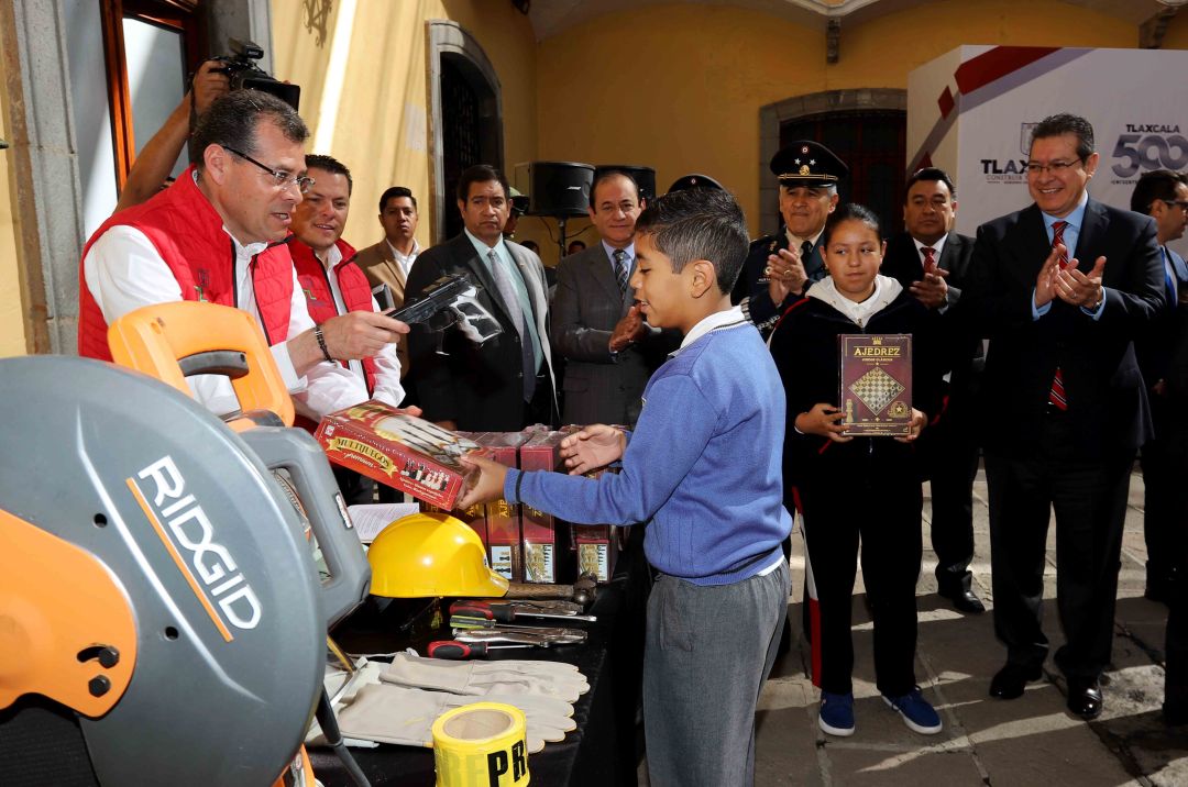El Gobernador Marco Mena refrendó el compromiso de mantener la tranquilidad que distingue a Tlaxcala y las condiciones de seguridad para que la población viva en paz y con posibilidades de progresar, al encabezar el inicio de la campaña “Canje de Armas de Fuego, Réplicas y Registro de Armas 2019”.