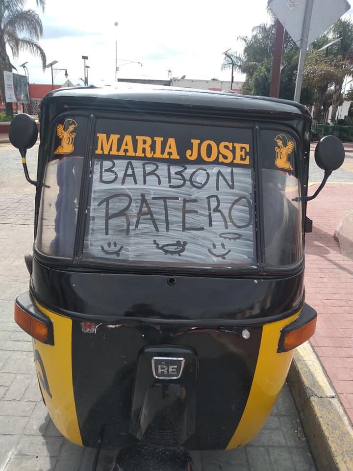 Con pintas en sus unidades, operadores mototaxistas protestaron en contra del líder transportista, Indalecio Saucedo, en repudio a la forma en que se ha conducido.