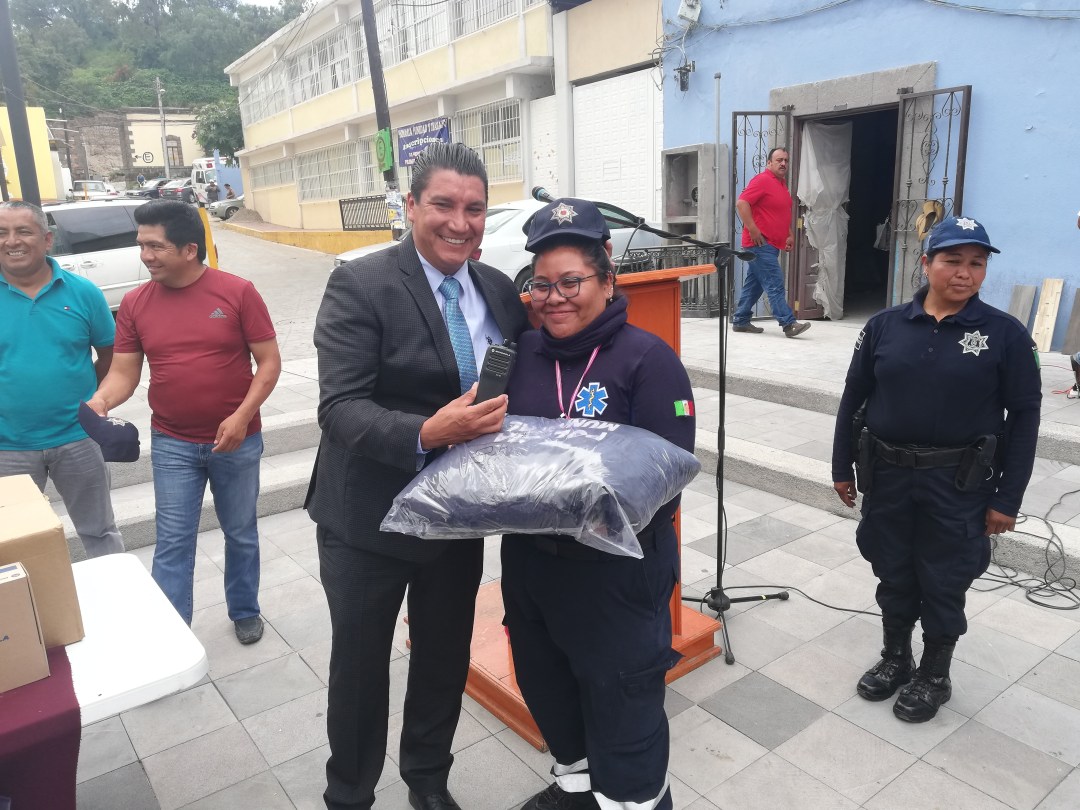 En este mismo evento, realizó la entrega de 10 radios, así como 38 uniformes que contemplan: pantalones, botas, playeras, gorras y chamarras.