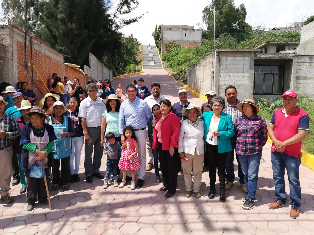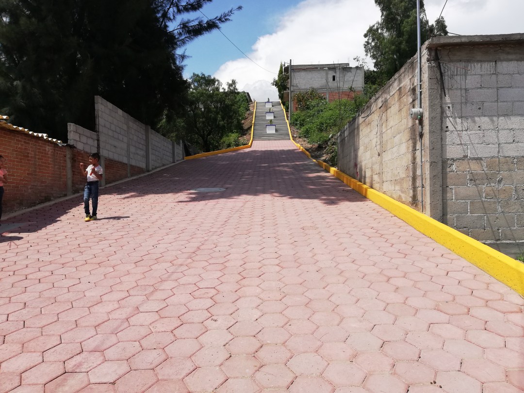 Con la finalidad de mejorar la comunicación entre la colonia Santa Cruz con la comunidad de San Rafael Tenanyecac, el alcalde de Nativitas, Oscar Murias Juárez, realizó la construcción de escalinatas y pavimento en la calle Benito Juárez de este último lugar.