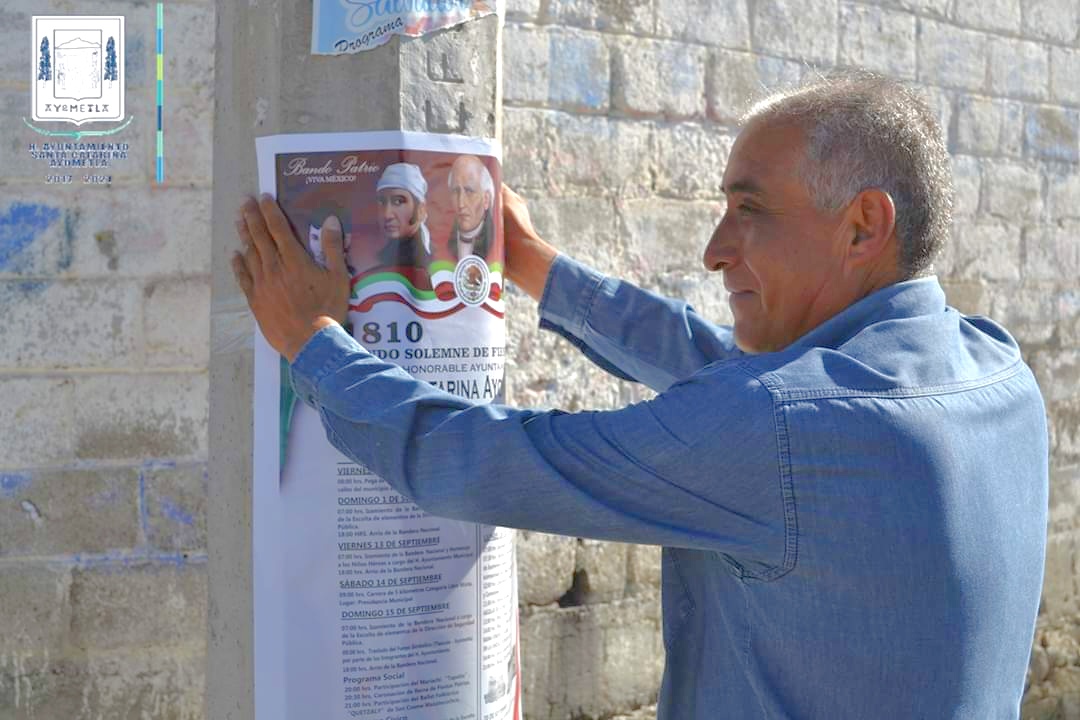 El presidente municipal Franco Pérez Zempoalteca, encabezó la colocación del Bando Solemne de Fiestas Patrias, para dar comienzo formal a las actividades para conmemora el 209 aniversario de la Independencia de México.
