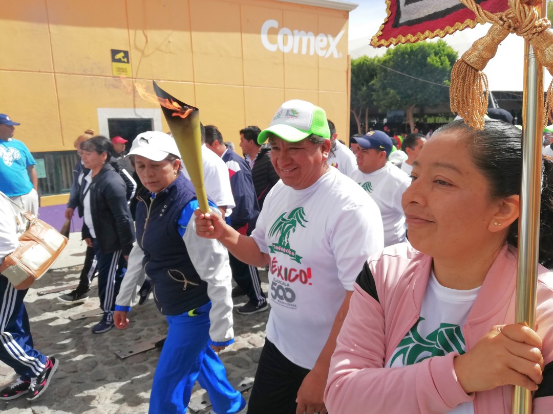 Tras recibir el fuego simbólico, se trasladó desde el centro expositor de la ciudad capital de Tlaxcala al municipio de Teolocholco.