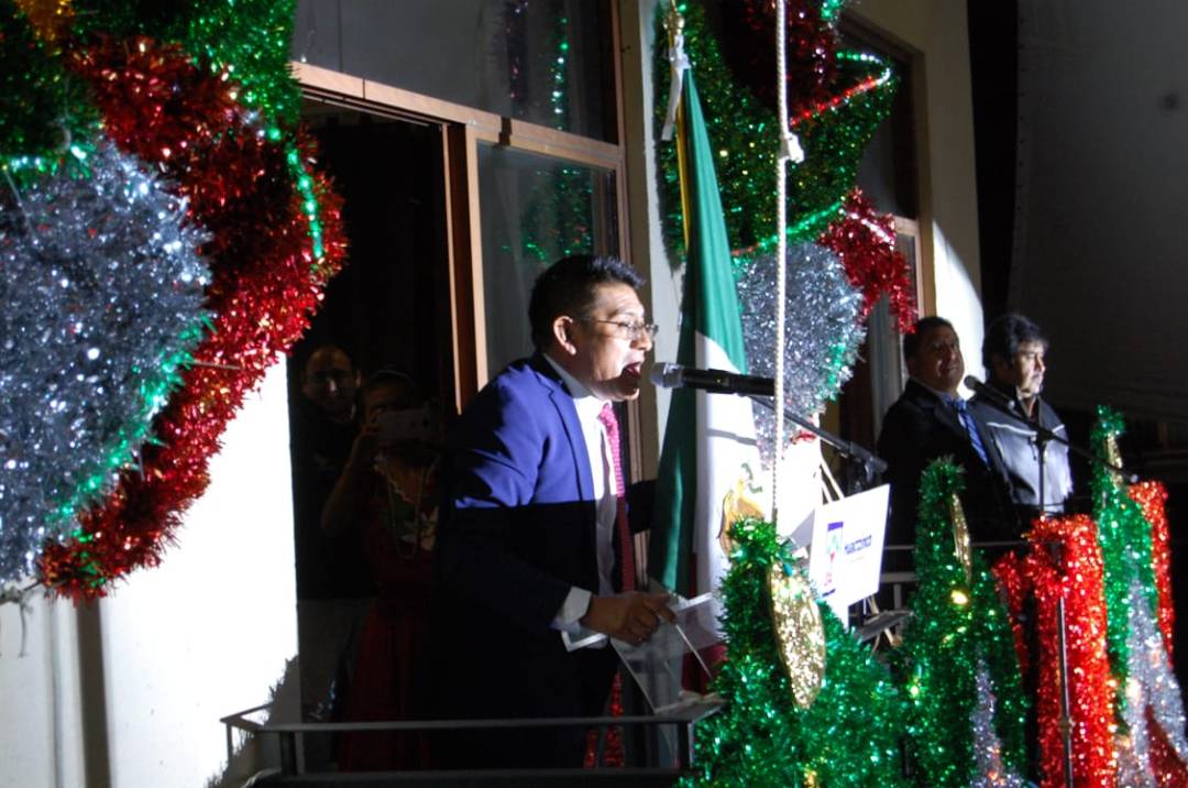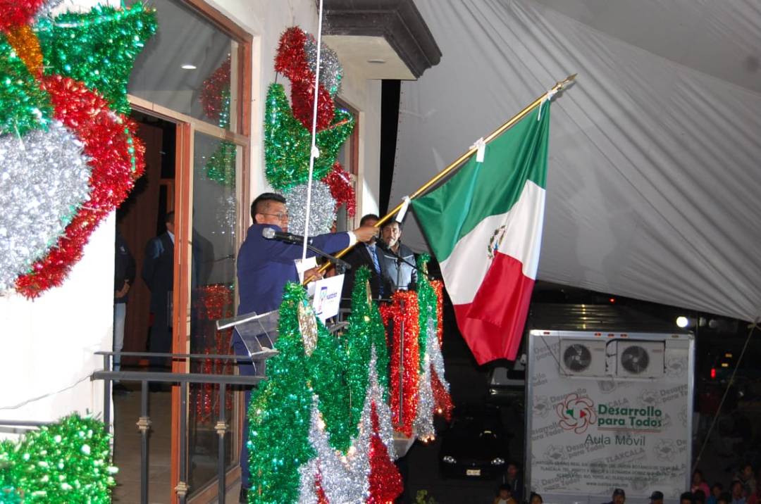 Ante cientos de familias que se reunieron en la Plaza Principal, el alcalde de Huactzinco, Alfredo Valencia Muñoz, emitió su tercer Grito de Independencia.