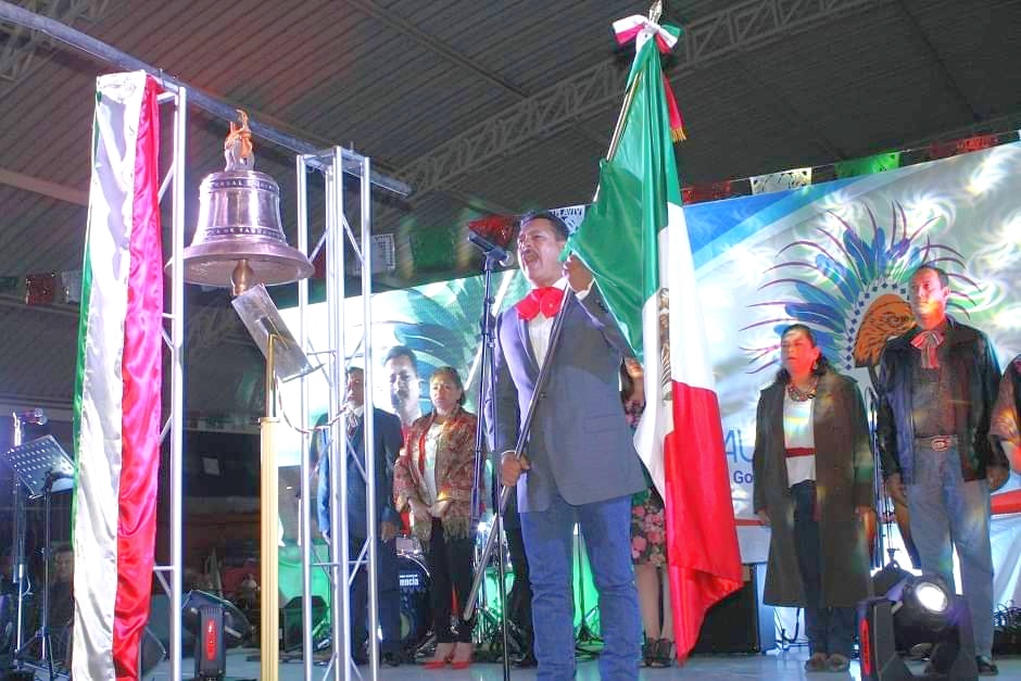 En punto de las 10:30 de la noche, integrantes del Honorable Ayuntamiento subieron al escenario en compañía del munícipe, que vitoreo a los héroes nacionales, toco la campana de independencia y dio paso a un hermoso espectáculo de pirotecnia que emulo a los próceres de la patria.