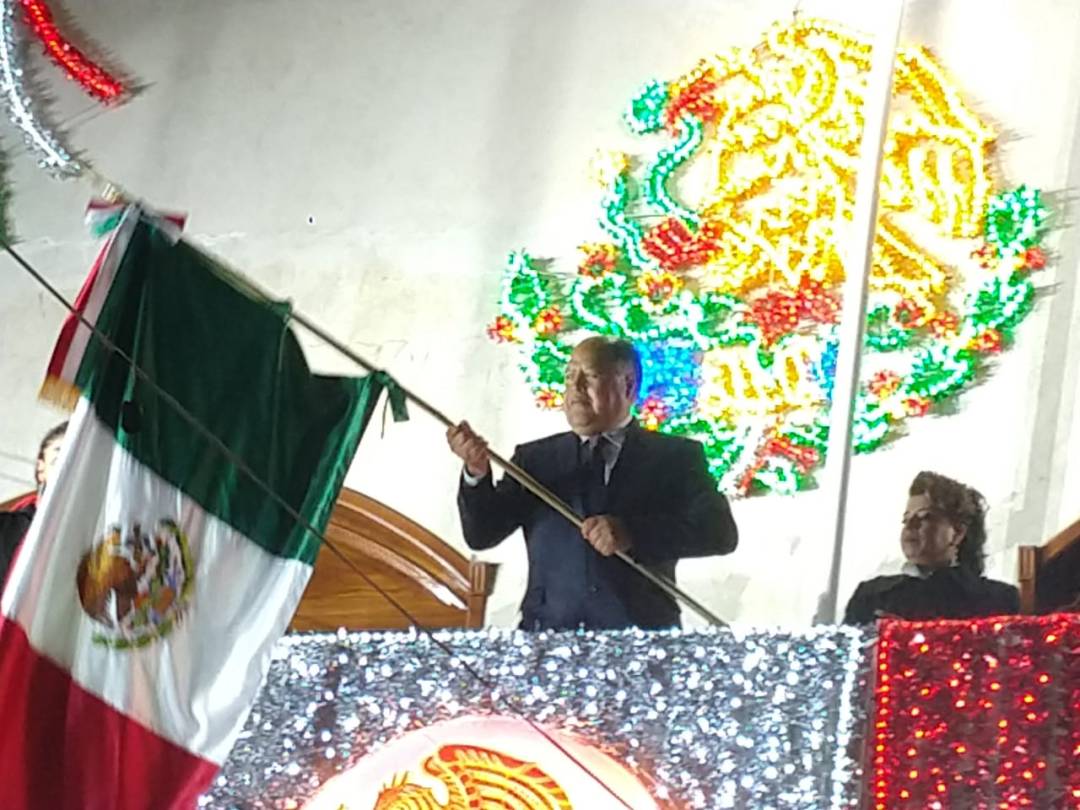 José Macías González, salió al balcón central para vitorear los nombres de los héroes que dieron patria y libertad a México.