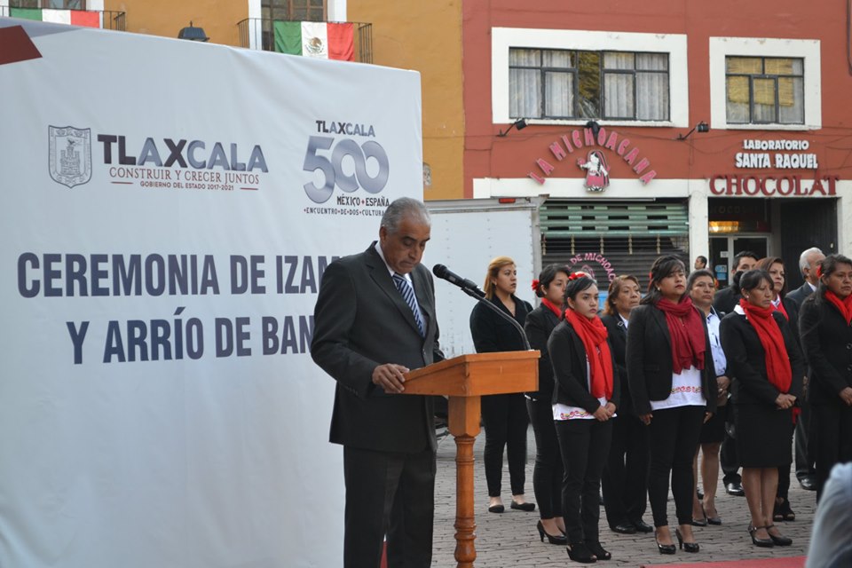 El Alcalde del municipio de Santa Catarina Ayometla, Franco Pérez Zempoalteca encabezó la mañana de este viernes el izamiento de bandera en el marco de los festejos del mes patrio, que se realizó en la explanada de Palacio de Gobierno.