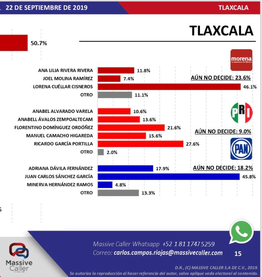 Lo destacable de esta encuesta, dijo Sánchez García en entrevista express a este medio de comunicación, es que la encuesta realizada por Massive Caller al tratarse de un instrumento de medición espontáneo de llamada telefónica con dos simples preguntas, la tasa de rechazo a contestar acertadamente se disminuye muchísimo y propicia la participación de la gente al no sentirse presionada bajo la avalancha de preguntas que generalmente representan las encuestas tradicionales.