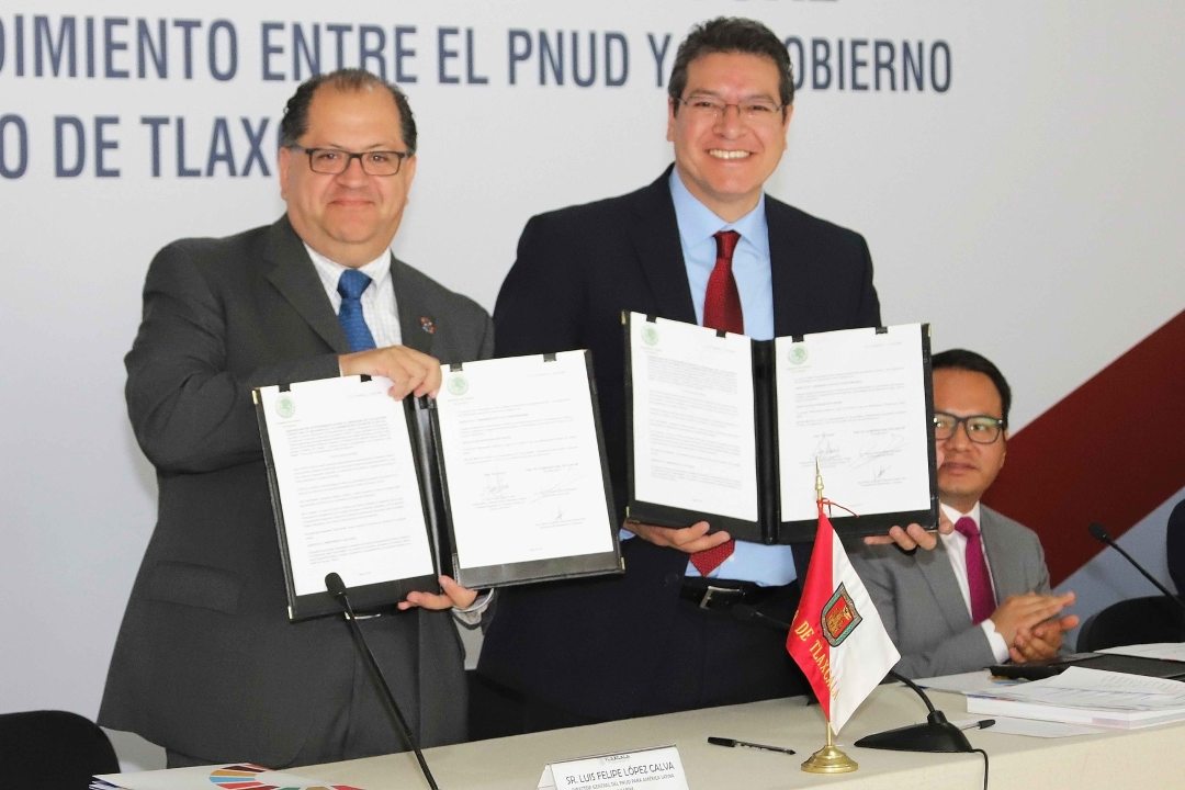 Ante el también Director Regional del PNUD para América Latina y el Caribe, el Gobernador Mena refrendó su compromiso amplio y categórico para reducir el número de tlaxcaltecas que viven en pobreza extrema y consolidar a Tlaxcala como referencia en el país en materia de igualdad social.