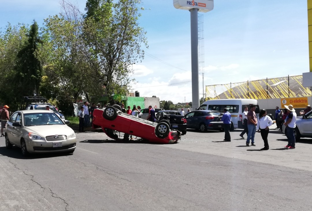 Se trata de un Chevy Monza color rojo con placas de circulación K35AXR, tripulado por una familia de Tezoquipan, quienes resultaron con lesiones menores, pese al aparatoso incidente.