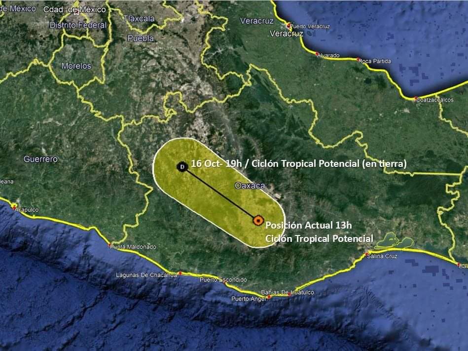 «El ciclón tropical potencial Diecisiete-E se localiza al sur de las costas de Oaxaca. Se pronostica que en las próximas horas se intensifique a depresión tropical», detalló el organismo en un boletín.