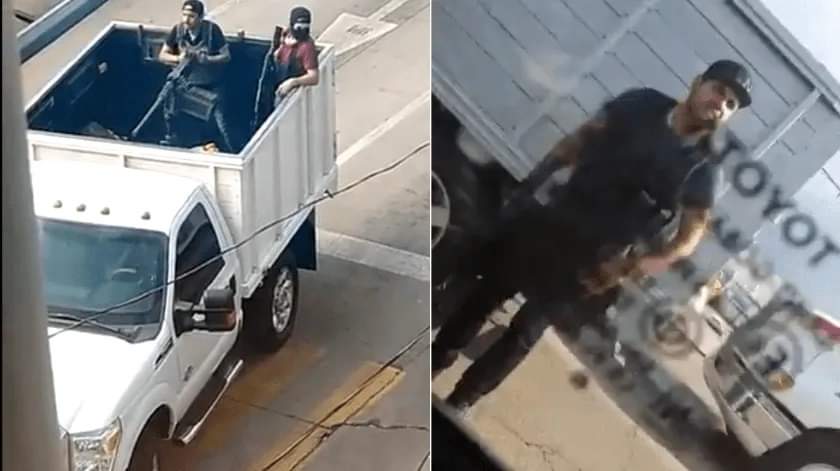 En los videos publicados en redes sociales se pueden observar a hombres a bordo de una camioneta con una metralleta.