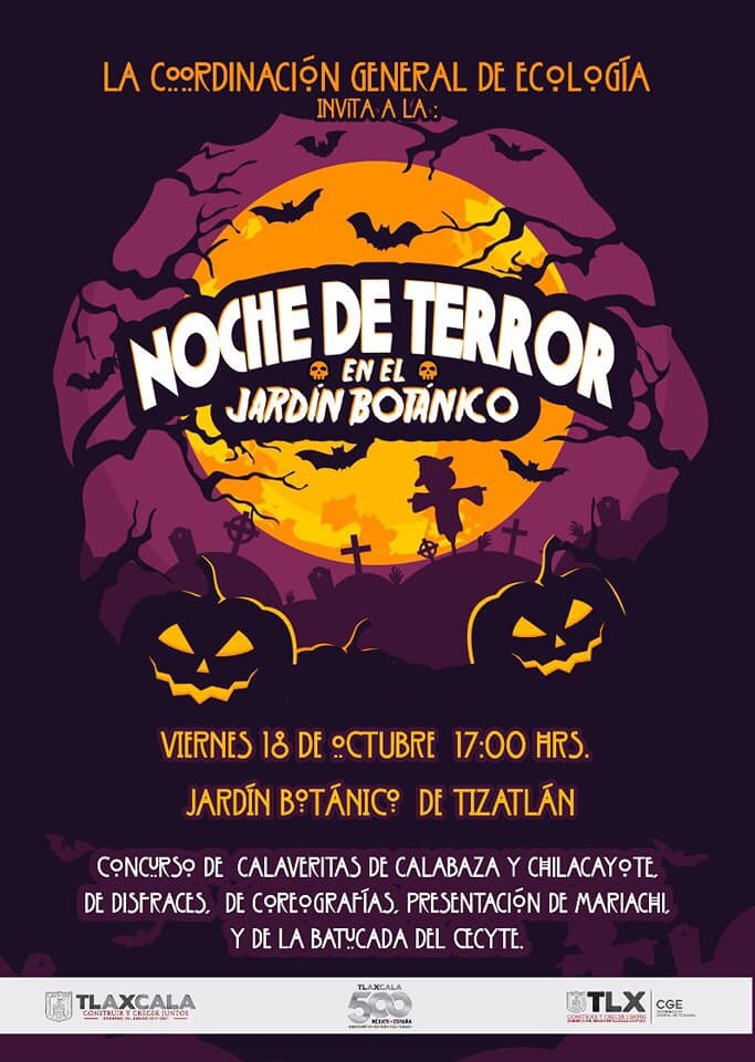La Coordinación General de Ecología (CGE) invita a la población a asistir a la “Noche de Terror” que se realizará en el Jardín Botánico de Tizatlán, el próximo viernes 18 de octubre, con el propósito de incentivar la unión familiar, así como fomentar la cultura del reciclaje y protección de áreas naturales.