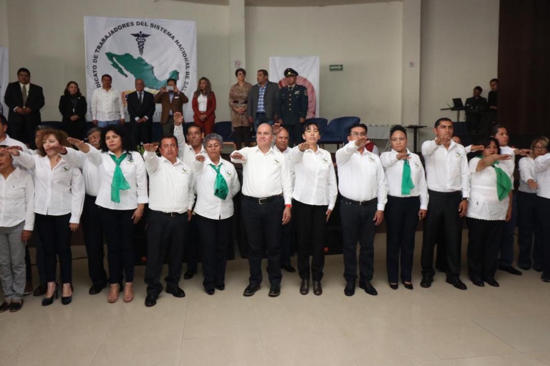 Ante cientos de asistentes, el Secretario General del Comité Ejecutivo Nacional del Sindicato de Trabajadores del Sistema Nacional de Salud, Luis Alberto Ramos Rivera, fue quien tomó protesta al nuevo liderazgo de Daniel Romero junto con su estructura sindical en Tlaxcala.