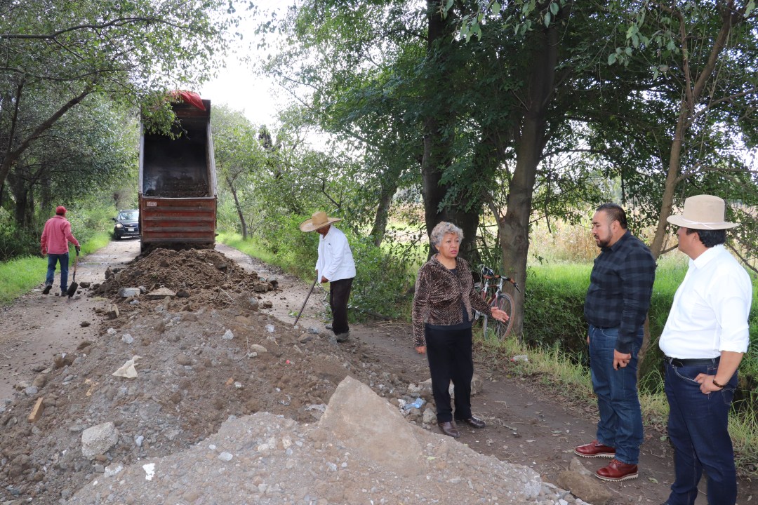 A través del área de Ecología y Desarrollo Rural y de un grupo de ejidatarios se logró gestionar material para nivelar las calles, así como el flete, alimento y gasolina, además de la retroexcavadora para mejorar los caminos.