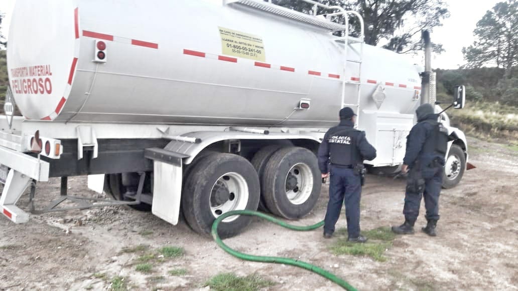 Por otro lado, una pipa con características similares en cuanto a rótulos y color, fue incautada sobre la carretera federal México-Veracruz en correspondencia a la misma comuna y con sentido a Texcoco y a la altura del entronque a Apan. En la misma diligencia, los uniformados aseguraron una camioneta marca Volvo tipo XC60 de color blanco y placas de circulación particulares terminación 47-87 del Estado de Puebla, que supuestamente brindaba acompañamiento al vehiculo de almacenaje que fue detenido.
