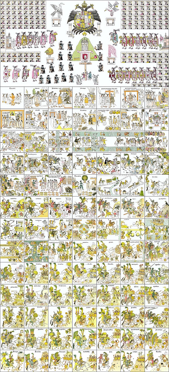 El Lienzo de Tlaxcala está conformado por dos secciones: una pictográfica y otra manuscrita que explica la primera.