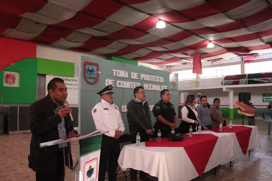 El presidente Municipal de Chiautempan Héctor Domínguez Rugerio tomo protesta de los 34 comités de vecinos vigilantes que se conformaron durante este año, quienes estarán trabajando de manera conjunta con el área de proximidad social y la Comisaria Municipal de Seguridad Pública y Vialidad.