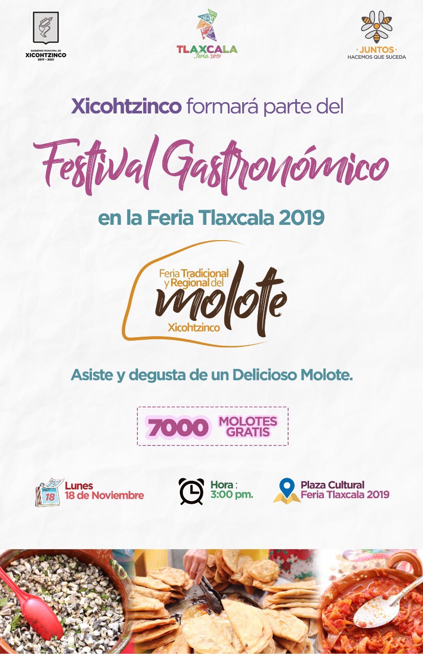 Como parte de la estrategia del Gobierno Municipal de Xicohtzinco para dar a conocer el platillo típico de la región, el próximo 18 de noviembre a partir de las 15:00 horas regalará 7 mil molotes a los asistentes a la feria de los tlaxcaltecas.