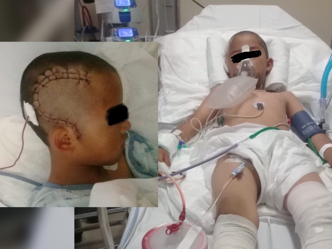 Al llevar al niño al medico, se descubre que debido al fuerte golpe sufrió una fractura craneal con un sangrado interno, así que en estos momentos su estado de salud es grave.