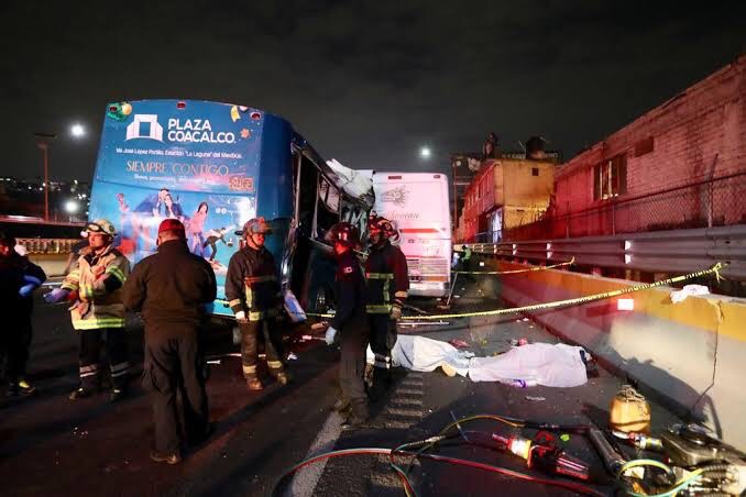 13 personas perdieron la vida en un choque entre tres autobuses que circulaban hacia Ecatepec, por la autopista México-Pachuca, a la altura de la parada de autobuses El Gallito.