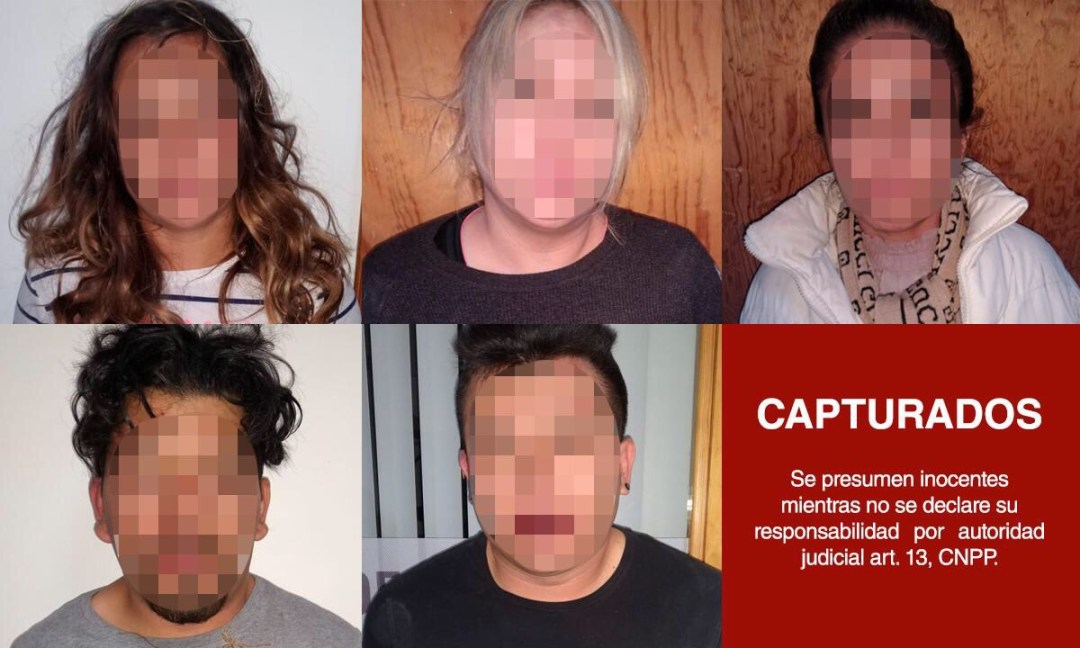 Resultado del operativo se logró el aseguramiento de quienes dijeron llamarse Nancy N. de 26 años de edad; Martha Patricia N., de 41 años; Carlos N., de 28 años y Daniel N., de 27 años, todos vecinos del estado de Puebla, e Isabel N., de 44 años y vecina de Papalotla.