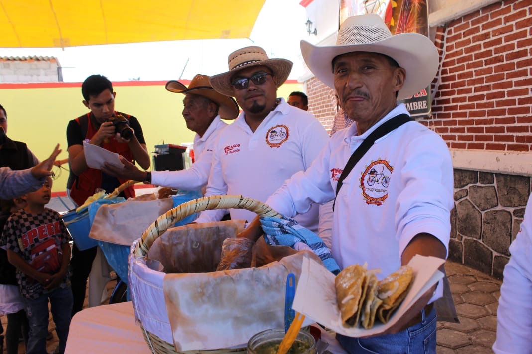 La principal atracción es precisamente la repartición gratuita de este platillo tradicional, así como el famoso desfile de taqueros que recorren las principales calles de la comunidad en las tradicionales bicicletas identificadas con las canastas enfundadas en plástico azul.