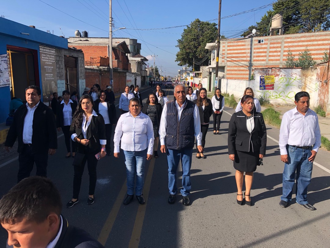 El recorrido concluyó en el auditorio municipal, en donde el alcalde compartió el pan y la sal con habitantes y participantes del desfile, quienes degustaron el tradicional mole de Ayometla.