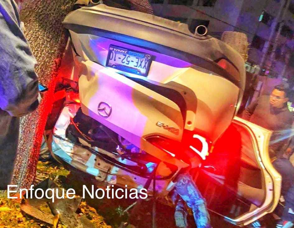 Los hechos ocurrieron alrededor de las 22:30 horas de la noche del martes, sobre el boulevard de la Revolución en Tlaxcala, cuando una camioneta Mazda color blanco, placas con terminación 52-10 del Estado de Tlaxcala golpeo aparatosamente a dos vehículos para finalmente estrellarse contra un árbol y volcar, dejando a su tripulante milagrosamente vivo.