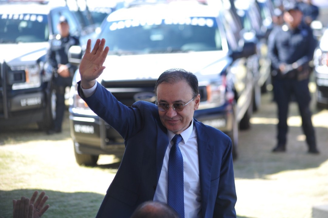El Gobernador del Estado Marco Mena realizó la entrega de los vehículos en compañía del Secretario de Seguridad y Protección Ciudadana del Gobierno de México, Alfonso Durazo.