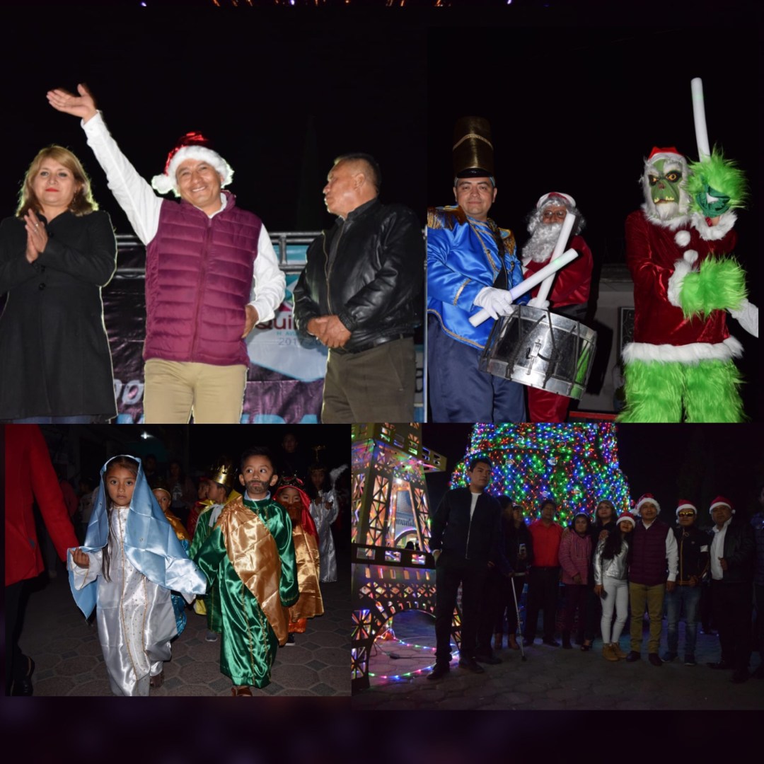 Cientos de habitantes y visitantes acudieron al tradicional encendido del monumental árbol de navidad, que encabezó por tercer año consecutivo el alcalde de Quilehtla, Oscar Pérez Rojas.