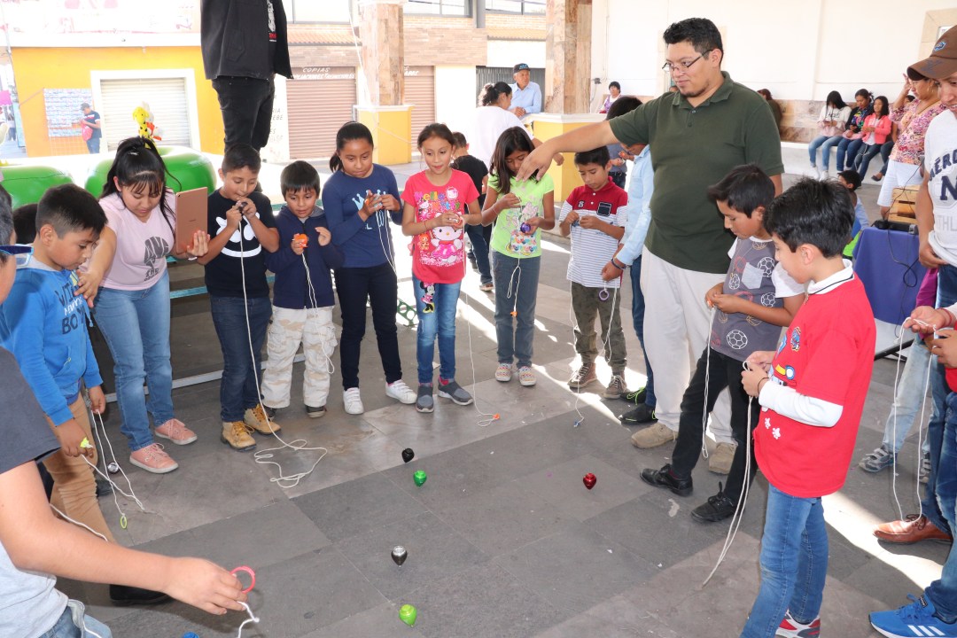 A partir de este domingo 1 de diciembre familias se dieron cita en la explanada municipal para divertirse con juegos, como: lotería, concurso de sillas y encostalados, exhibición de trompo.