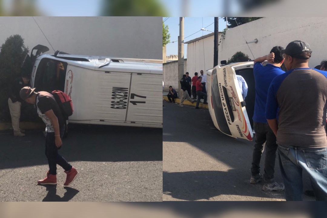 Fue alrededor de las 3 y media de la tarde, que sobre la calle Diamante la unidad Nissan de color blanco y placas 636-323-W que cubría la ruta Zacatelco-Acxotla; presentó una falla en la dirección, obligando a volcar de forma aparatosa, hasta quedar sobre su costado izquierdo.