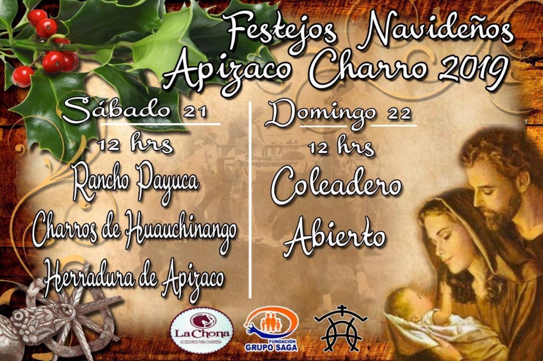 Con el objetivo de promover el deporte nacional de la Charrería y celebrar las fiestas decembrinas, los invitamos el 21 y 22 de diciembre en donde se desarrollará una fiesta charra y coleadero abierto en el Lienzo Charro de Apizaco a partir de las 12 :00 hrs.