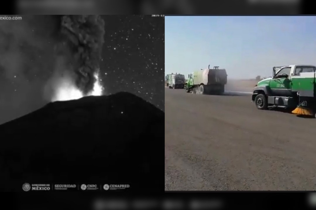 La intensa caída de ceniza del Popocatépetl obligó al aeropuerto de la ciudad de Puebla a suspender algunos vuelos que tenía previstos esta mañana, por lo que iniciaron las labores de limpieza con ayuda de tres barredoras.