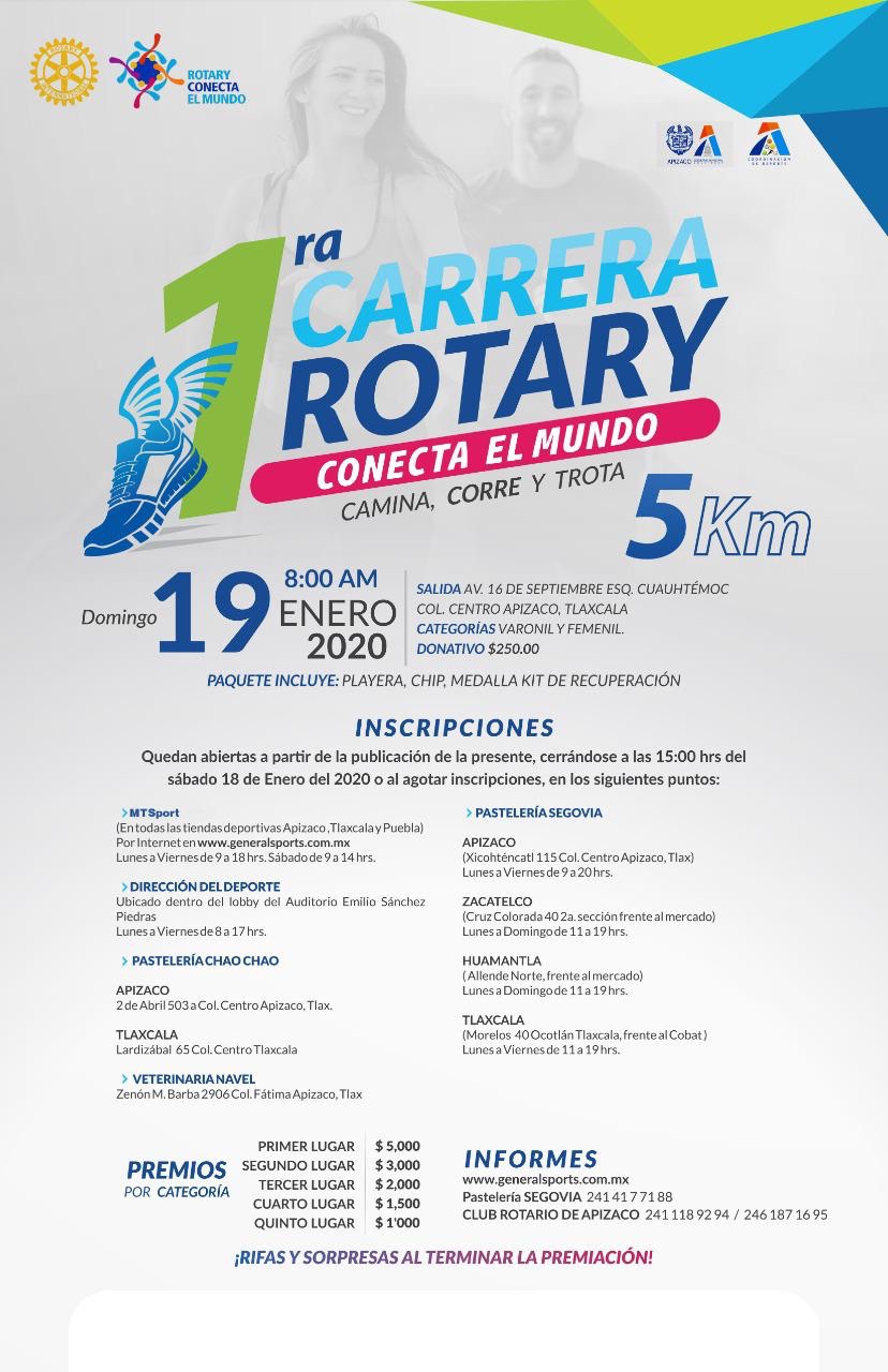 Club Rotary a Apizaco te invita a participar en la primera carrera Rotary 5 km “conecta el mundo” este 19 de enero.